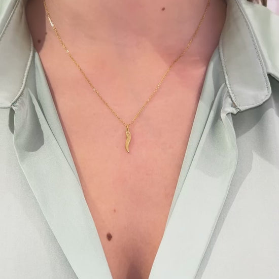 Aggiungi un tocco di fortuna al tuo look quotidiano con COLLANA CORNETTO. Realizzata in acciaio nichel free, questa collana regolabile presenta come pendente il tradizionale amuleto cornetto Portafortuna. Disponibile in colore oro oppure argento. La collana misura 40 cm di lunghezza + 5 cm di estensione. Il pendente misura 2,5 cm il grande e 1,5 cm il piccolo. Porta la fortuna sempre con te, o donala come regalo a una persona speciale.