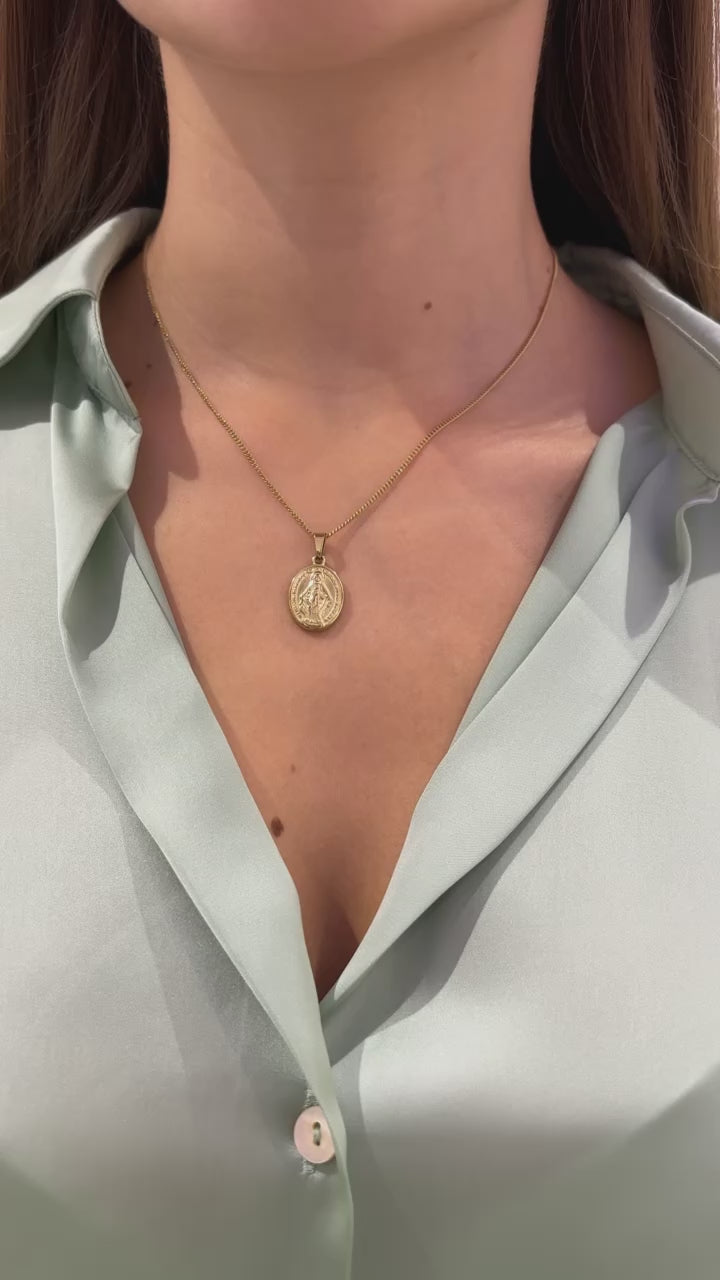 Aggiungi un tocco di raffinatezza con COLLANA MADONNA. Realizzata in acciaio nichel free, questa collana regolabile presenta un ciondolo raffigurante la Madonna. Disponibile in colore oro oppure argento, la catenina misura 40 cm + 5 cm di estensione. Il pendente misura circa 1,5 cm. Questo gioiello é perfetto da indossare per i tuoi look quotidiani.