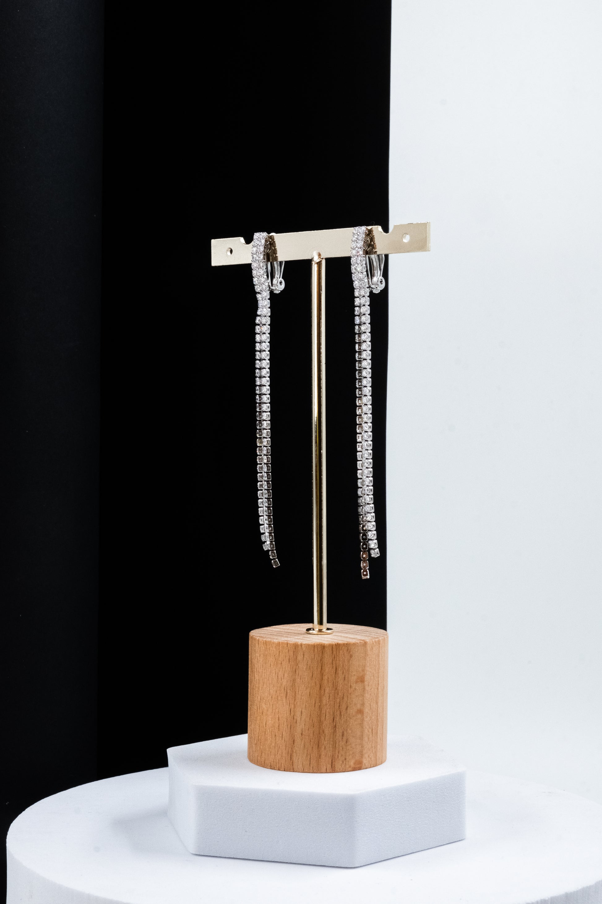Aggiungi radiosità e fascino a qualsiasi outfit con ORECCHINI CLIP FILI STRASS. Realizzati in acciaio nichel free, questi eleganti orecchini sono composti da due delicati fili di strass scintillante e una chiusura a clip. Disponibili in colore oro, argento ed oro rosa. Gli orecchini misurano 9 cm di lunghezza. Crea l’abbinamento perfetto con gli altri accessori disponibili.