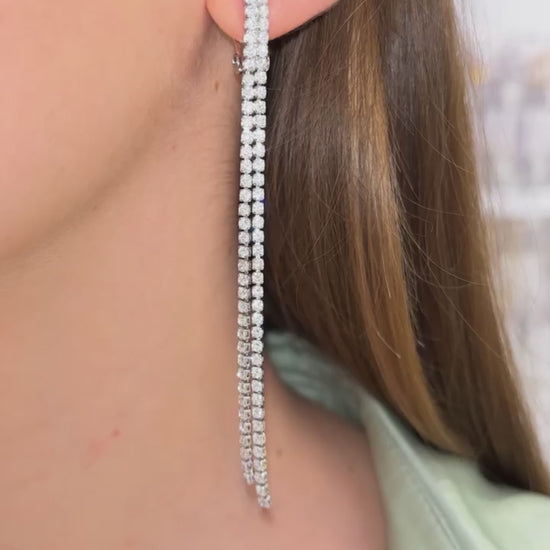 ORECCHINI CLIP 2 FILI STRASS ARGENTO