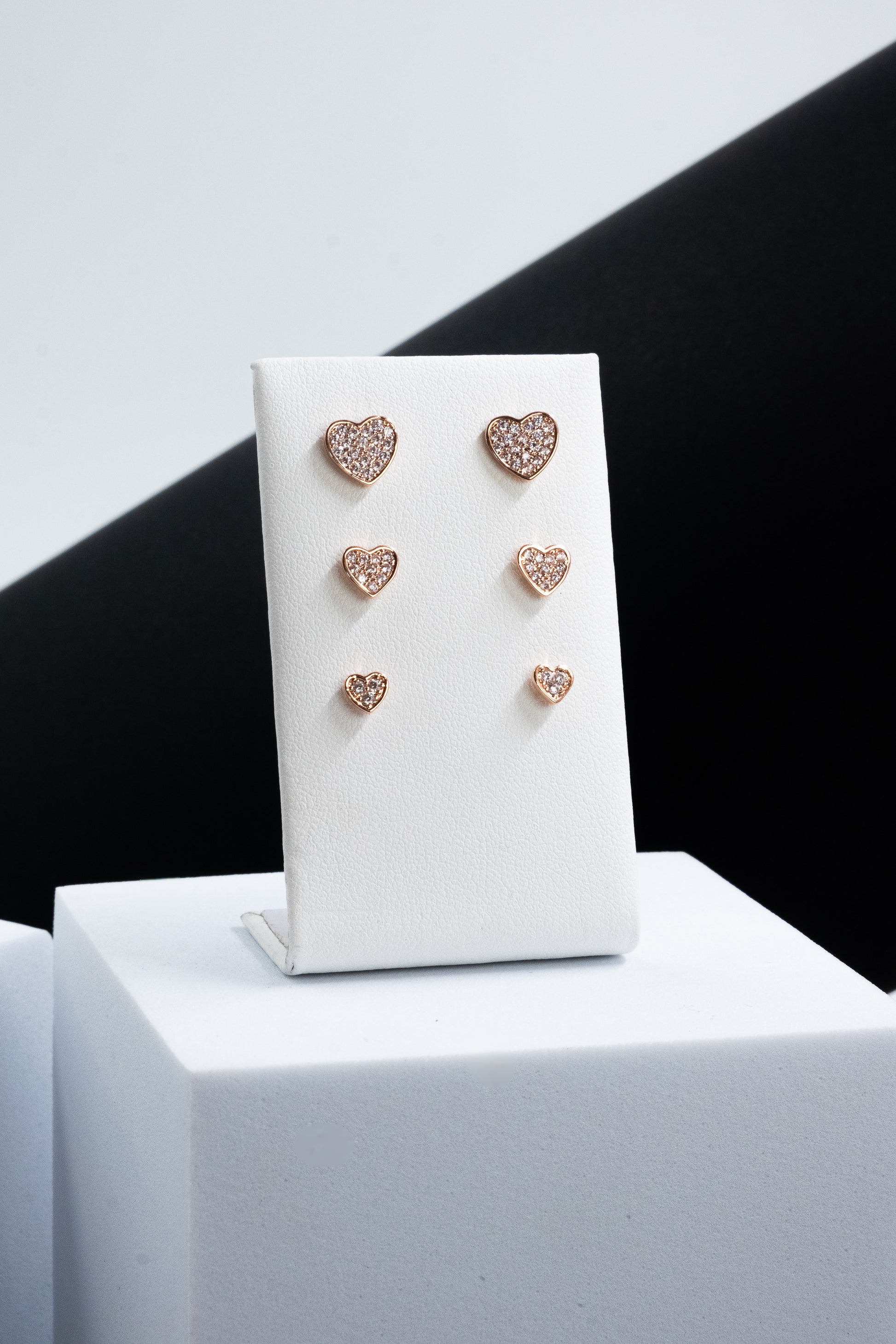 Aggiungi brillantezza al tuo outfit con SET ORECCHINI CUORI. Realizzati in acciaio nichel free, questi orecchini presentano piccoli cristalli bianchi incastonati. Disponibili in colore oro rosa oppure argento. Il set comprende tre paia di orecchini di diverse misure: 9 mm, 7 mm, 5 mm. Delicati e raffinati, sono perfetti per completare qualsiasi look. Indossali insieme o abbinali ad altri orecchini della linea SET.