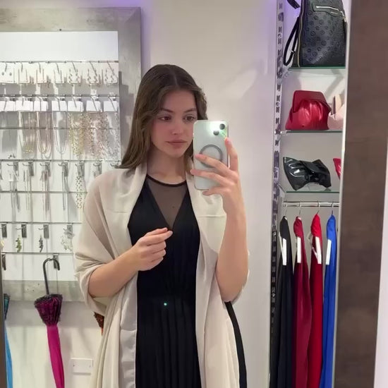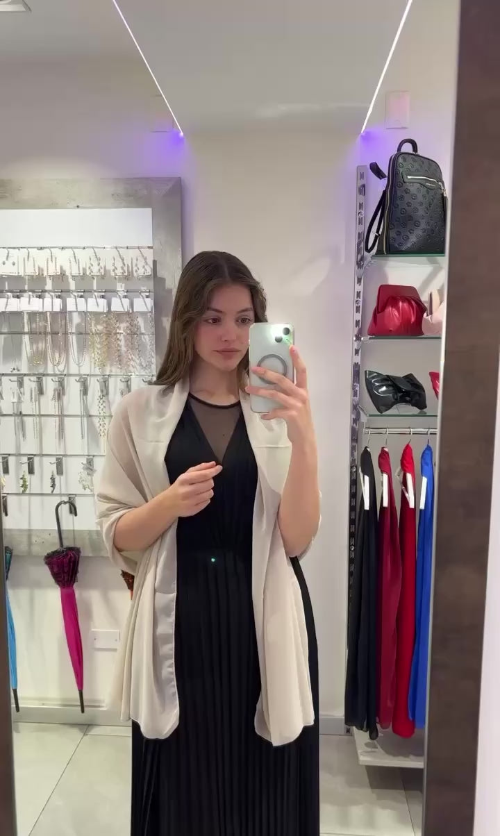 Aggiungi un tocco di eleganza con la STOLA CHIFFON. La stola misura 195 cm x 75 cm. Questo capo morbido e avvolgente è ideale da abbinare agli abiti da cerimonia, così da completare un look chic per ogni occasione.